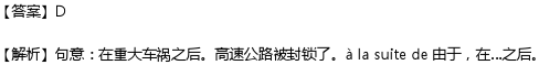 (C) grace a(D) a la suite d